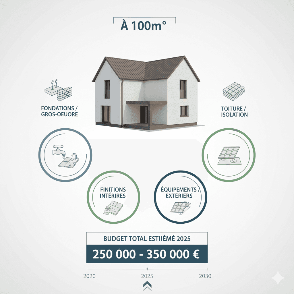 Estimation détaillée et réaliste du coût de construction d'une maison de 100m² selon différents niveaux de finition.